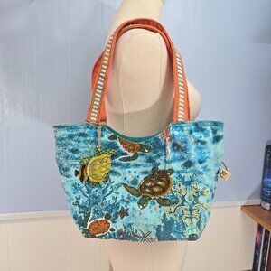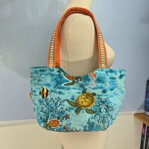 Paul Brent Sun N' Sand Blue Orange Ocean Themed Sequined Medium Handbag