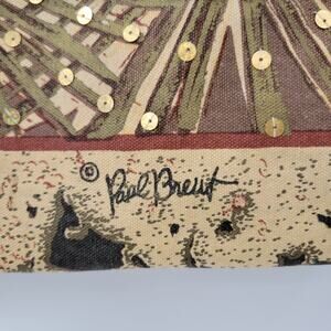 Paul Breut Travel Weekender Duffle Bag Large Brown Canvas Sequin Palm Tree Print