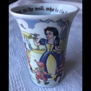 Nice Collectors Paul Cardew Tall Coffee Tea Mug. Snow White and the 7 Dwarfs. Rose painted handle. Inside rim reads “Mirror Mirror On The Wall, Who Is The Fairest Of Them All? 2012. Designed in England.