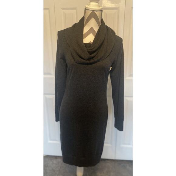 Paul Costelloe BLACK LABEL Midi Dress M Dark Grey Marino Wool Acrylic Cowl Neck
