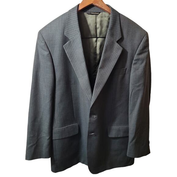 Paul Dione Men Wool Blazer 42R Gray Striped Business Jacket Career Office Canada
