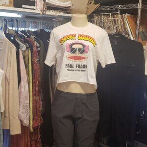 100% Cotton White Short Sleeve Cropped Tee Shirt. The emblem on the shirt says "Sweet Sounds" "Paul Frank" "Powered by the Music". If you have any questions, please do not hesitate to contact me. That's what I am here for. If you'd like to make an offer, please go right ahead. NO OFFER OFFENDS ME. All I'll do is counter with the best possible offer I can give you without hurting myself. If we can't come to a mutual arrangement, then C'est La Vie. Thank you very much for looking in my closet. Happy Poshing and God Bless You.