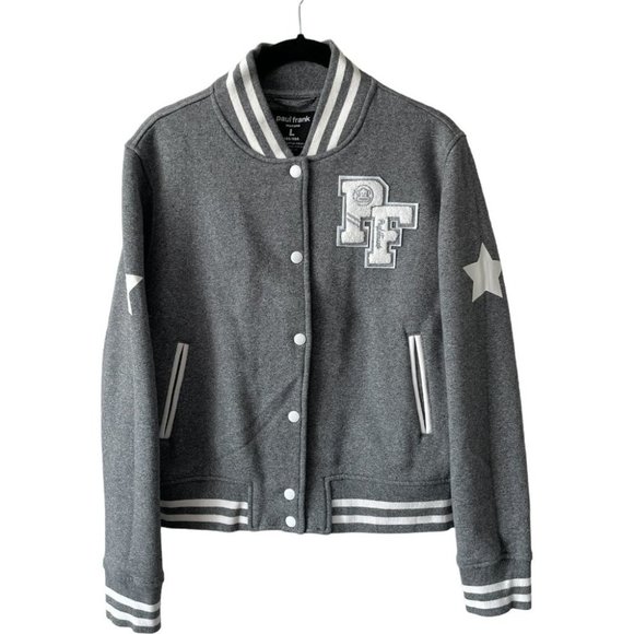 Paul Frank Varsity Jacket Button Front Collared Gray White Large
