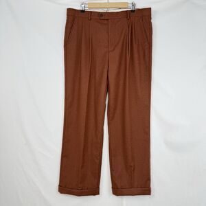 Paul Frederick Mens 36x28 Brown Pleated Dress Pants Cuffed Wool Cashmere