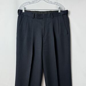 Paul Frederick Men’s 36x28 Navy Blue Pleated Dress Pants Cuffed Extended Waist