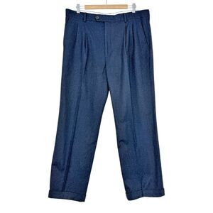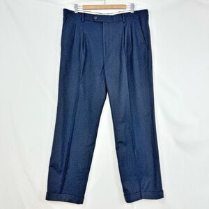 Paul Frederick Men’s 36x29 Navy Blue Pleated Dress Pants Cuffed Wool Cashmere