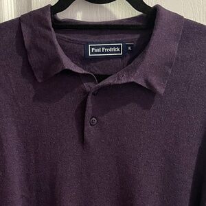 Paul Frederick Mens Sweater XL Purple Collared 1/4 Button Silk/Cotton/Cashmere