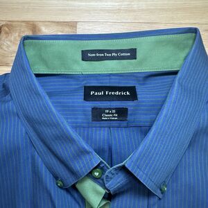 Paul Frederick Non-Iron 2 Ply Cotton Striped Mens Long Sleeve Dress Shirt 19x35