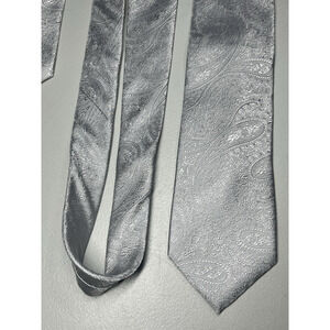 Paul Frederick Silver Paisley Print Silk Tie Mens Necktie 3 1/4" x 61"