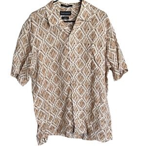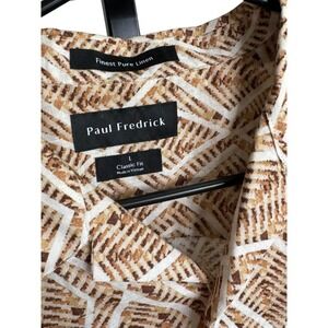 Paul Fredrick 100% Linen Classic Fit Short Sleeve Button Up Shirt Large Leaf