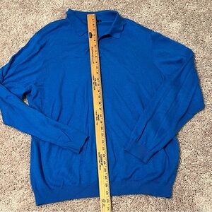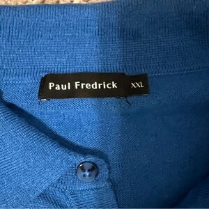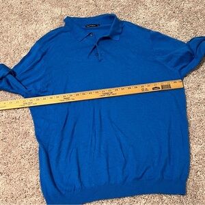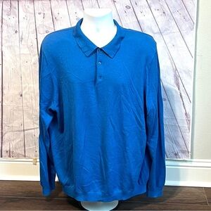 Paul Fredrick Blue Polo Long Sleeve Sweater Shirt Cashmere Silk Size 2XL