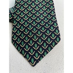 Paul Fredrick Blue with Green Flower Pattern 100% Silk Designer Tie