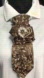 Elegant brown necktie necklace with gold brooch. Features intricate design and pearl embellishments. Perfect for formal occasions.