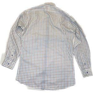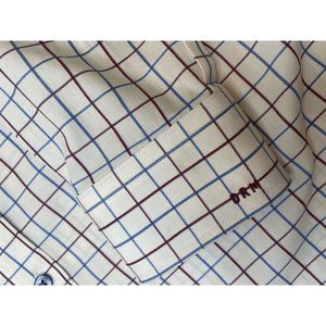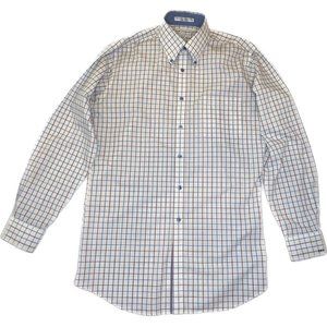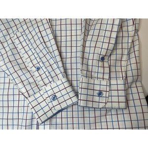 Paul Fredrick Dress Shirt Mens 15 1/2 - 34 trim fit Square Plaid White Blue