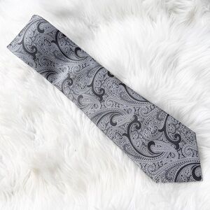 Paul Fredrick Gray Paisley 100% Silk Tie – 3.5” Wide Made in China
