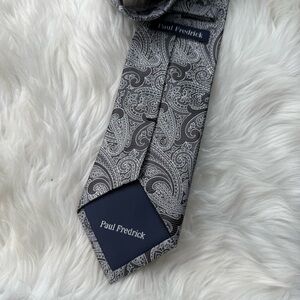 Paul Fredrick Gray Paisley 100% Silk Tie