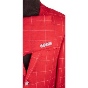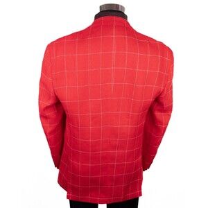 Paul Fredrick Men's 42S Sport Coat Blazer Red Check LINEN 2-Button Casual SLIM