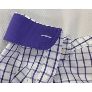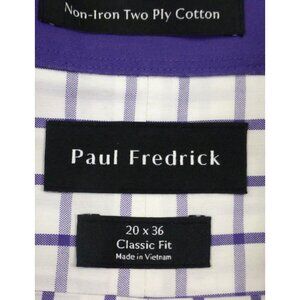 Paul Fredrick Mens Non-Iron Classic Fit Checkered Dress Shirt 20 x 36 Purple & W