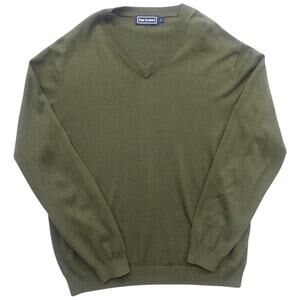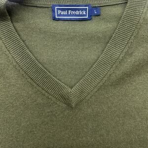 Paul Fredrick Men's V Neck Sweater Silk Cotton Cashmere Size Large Olive Green