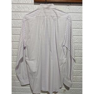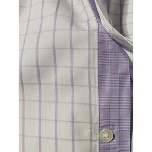 Paul Fredrick Men's White & Lavender Window Pane Print Button-Down Shirt Size 16