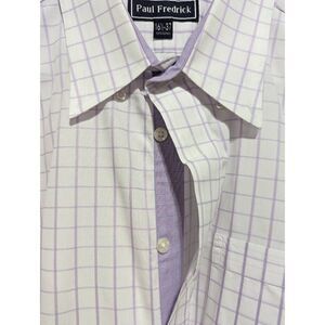 Paul Fredrick Men's White & Lavender Window Pane Print Button-Down Shirt Size 16.5/37