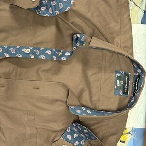 Elegant navy shirt with intricate paisley design. Crafted from non-iron cotton for easy care.