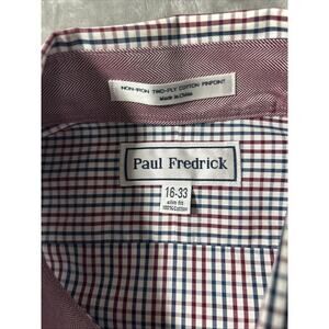 The Paul Fredrick Non-Iron Men's Oxford Flip Cuff in size 16 1/2-33 is a stylish and practical button-up shirt for men. This multicolor (red, white & blue) shirt features a long sleeve and a regular fit, making it suitable for casual occasions. The non-iron feature adds convenience and ease to maintaining the shirt's appearance, making it a versatile addition to any man's wardrobe.