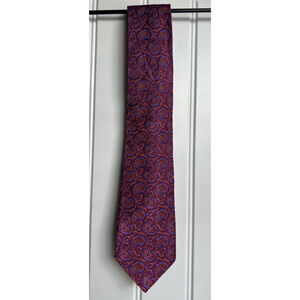 The Paul Fredrick Red Paisley Designer Tie is a luxurious silk necktie featuring a classic paisley pattern in a vibrant red color. Made in Italy, this designer tie exudes style and sophistication, perfect for adding a touch of elegance to any formal outfit. The high-quality woven fabric and classic length make it a versatile accessory for any man's wardrobe.