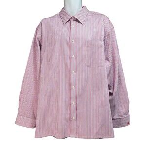 Paul Fredrick Red White Blue Stripe Long Sleeve Shirt Men's 18.5 Monogram XDM