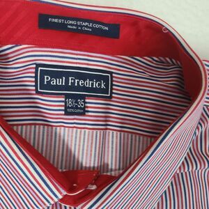 Paul Fredrick Red White Blue Dress Shirt Men's 18.5 X 35 Monogram XDM Patriotic