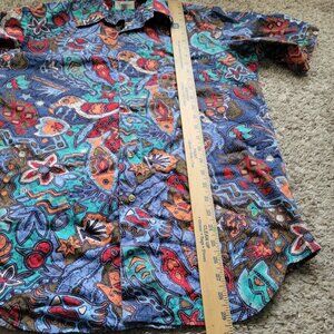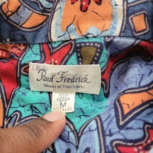 Paul Fredrick Shirt Mens Medium Geometic Colorful Button Up Short Sleeve