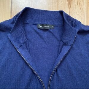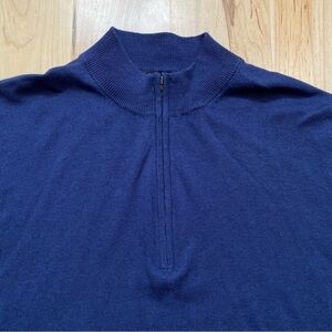 Paul Fredrick Silk, Cotton & Cashmere Zip Mock Neck Sweater Dark Blue/Navy