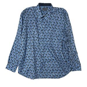 Paul Fredrick Size 2XLT Men’s Button Down Paisley Long Sleeve Casual Shirt Blue