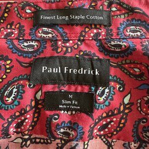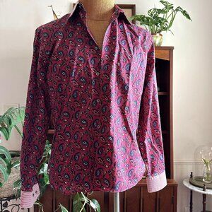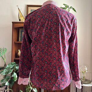 Paul Fredrick Slim Fit Red Paisley Dress Shirt, Long Sleeve Cotton M