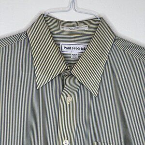 Paul Fredrick Yellow Navy Striped Men’s Button Down Dress Shirt