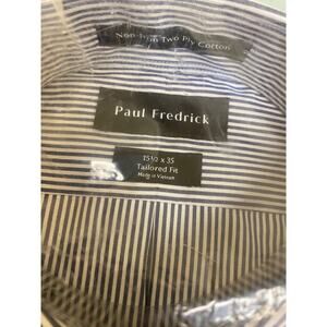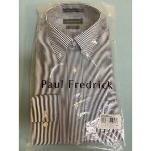Paul Fredrick non-iron dress shirt long sleeve with contrast trim, navy blue