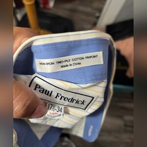 Paul Fredrick non-iron two-ply cotton pinpoint Long Sleeve Shirt Slim Fit Stripe