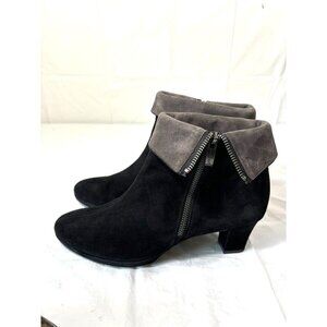 Paul Green 2073-03 Black Leather Ankle Boots with grey Fold down cuff