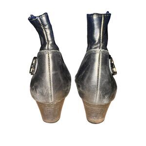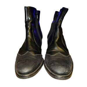 Paul Green Ankle Boots Women's Size 7 Black Leather Wingtip Buckle Side Zip