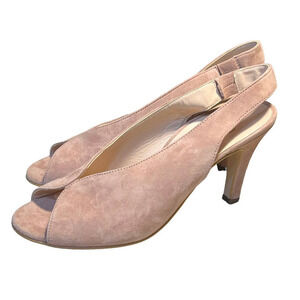 Paul Green Avanti Leather Suede Peep Toe Sling Back Dusty Pink Heels Size 6