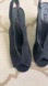 These elegant black heels by Paul Green feature a classic peep-toe design and a comfortable slingback strap. Crafted from a soft suede material, they offer a sophisticated matte finish, perfect for formal occasions.