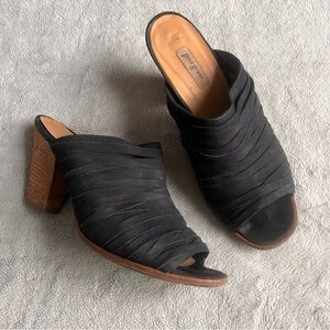 Paul Green Avery Nubuck Leather Artisan Strappy Block Heel Peep Toe Mule Black
