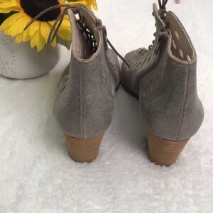 PAUL GREEN Bali Lace-Up Bootie Peep Toe Sandal Zip Metallic Gray