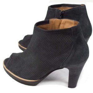 Paul Green Beacon Perforated Black Nubuck Open Toe Booties