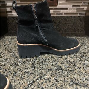 Stylish black ankle boots by Paul Green. Features a tan trim and side zipper. Perfect for versatile wear.
