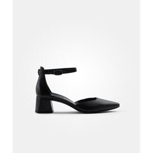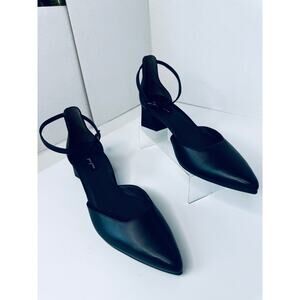Paul Green Black Leather Ankle Strap Heels UK 8.5/US 11 Block Heel Pointed Toe
