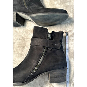 Paul Green Black Leather Nubuck Sheridan Ankle Moto Zip Boots Womens US Size 9