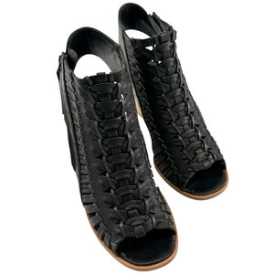 Paul Green Black Leather Woven Peep Toe Slingback Heels Size US 7.5 and EU 5