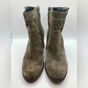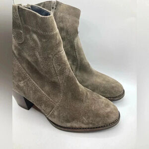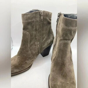 Paul Green suede booties. Cigar suede greenish brown color. Block heel 3”. Zipper closure. In overall beautiful condition. Normal wear and tear with tons of life left. Perfect with crop jeans and sweater, skirt, dress, or dress up with a blazer and tshirt. Women’s size 5. MSRP $359