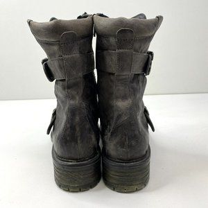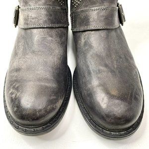 Paul Green Boots Leather Ankle Moto Gray Side Zip Women US 7.5 UK 5.5 Steampunk